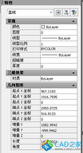 ctrl+1 不知道你是不是指的這個,但是個人比較習(xí)慣用這個查看圖形的特性。圖層、顏色、線型、長度、起始點的坐標(biāo)、面積等等都能夠查看的。
