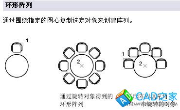 命令ar,作用就是創建按指定方式排列的多個對象副本。比方說,畫一張桌凳的平面,圍繞桌子要畫4個凳子,畫完1個,剩下3個就可以用陣列復制出來,當然,使用陣列里的環形陣列。