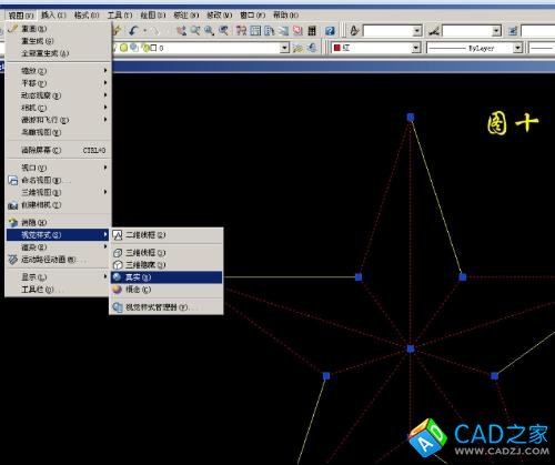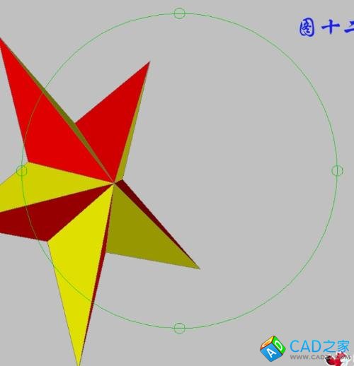 10、把五星各角左半部分設(shè)置為紅色右半部分設(shè)置為黃色,按圖十選擇視覺樣式為“真實(shí)”
