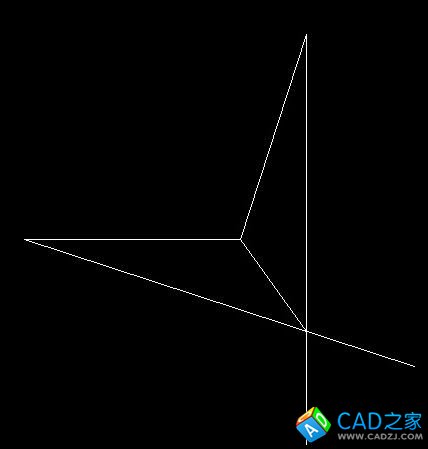 6、選定圖六所示3條線段,用鼠標(biāo)點(diǎn)三條線段的交點(diǎn)后停住鼠標(biāo),打@0,0,30 回車確定。