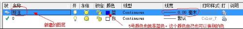 可以先把標注設置在一個圖層,這個圖層的線寬設置為0.00,再設置一個圖層顏色,假如是5號顏色,如下圖