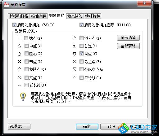 第二步:設置對對象捕捉:只選切點。
