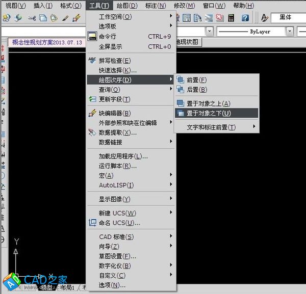 還可以調(diào)出“繪圖次序”工具欄來使用此命令。