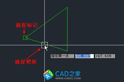 當(dāng)設(shè)置了某些捕捉選項并打開了對象捕捉后,在繪圖或編輯圖形時,當(dāng)提示定位點或距離參數(shù)時,光標(biāo)在靠近圖形對象的邊界或頂點時,在滿足條件的特征點處就會出現(xiàn)捕捉標(biāo)記,此時單擊就可以將坐標(biāo)定位到捕捉標(biāo)記出現(xiàn)的位置。
