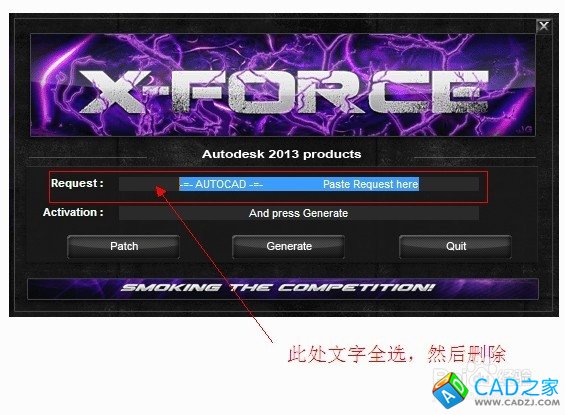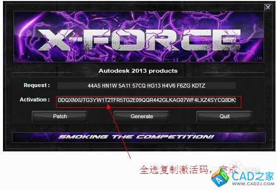 以“管理員身份”運行注冊機。首先,將激活界面的申請號填至注冊機中的Request中(注意:務必校核無誤);然后,點Generate算出激活碼,并點擊Patch予以確認(這是必須的:否則將提示激活碼不正確);最后,復制Activation中的激活碼,粘貼(組合鍵:Ctrl + V)至界面“輸入激活碼”欄中,點擊“下一步”即大功告成順利激活!
