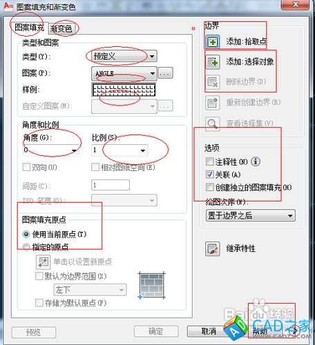 在命令框中輸入H(或者點(diǎn)擊工具欄的填充標(biāo)志),點(diǎn)擊ENTER 鍵,這時你可以選擇添加拾取點(diǎn)或添加選擇對象,同時設(shè)置湍內(nèi)型,樣例,比例,角度等等。