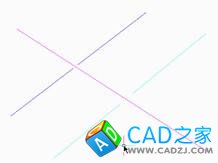 準備做交叉速斷的線段,用粉色線作為遮擋線段分別打斷藍色線和青色線。通過前面提到的交叉速斷寬度可調整斷開的寬度。設定好速斷寬度后,再使用一次交叉速斷來打斷青色線,注意斷開寬度的差異。如圖所示。