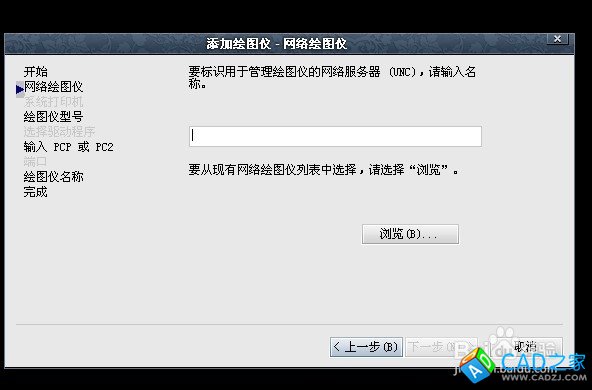 如果需要使用網絡中共享的打印機,選“網絡繪圖儀服務器”單選鈕,單擊“下一步”。