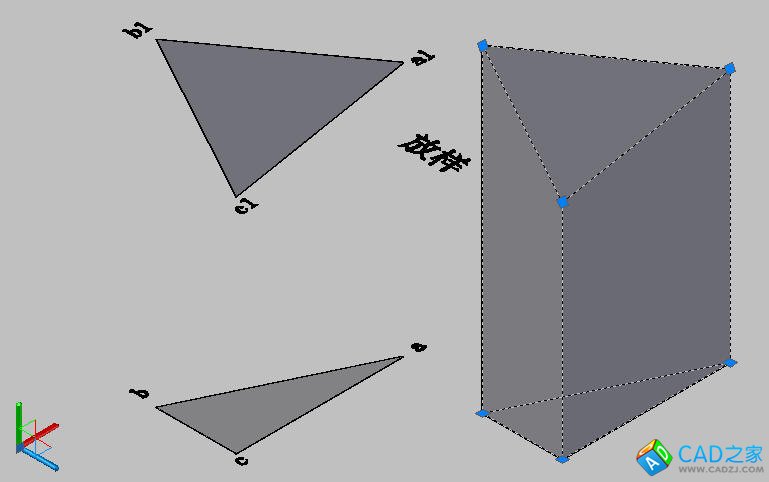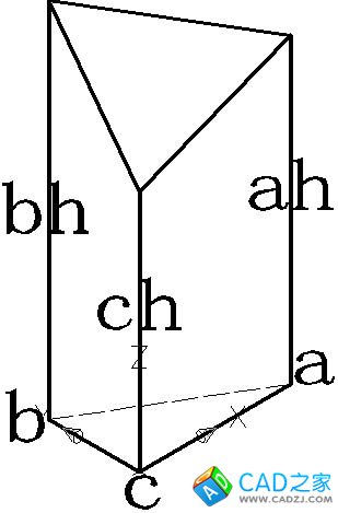 一個直角三角形a、b、 c三個角點的z值相等,三條棱高ah、bh、ch各不相等,如圖,怎樣畫出三維實體?