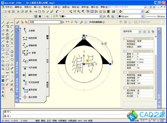 至此,創建了一個名叫“內視”的帶有屬性的普通“塊”。以下的步驟將此普通“塊”編輯成動態“塊”。
