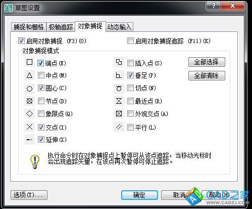 在頁(yè)面最下面有個(gè)對(duì)象捕捉右鍵選擇設(shè)置點(diǎn)中點(diǎn)打鉤,打開(kāi)對(duì)象捕捉就好了