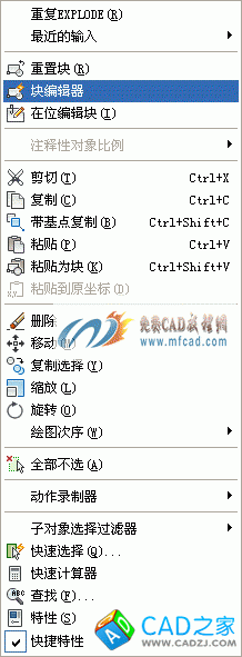 (1)選中塊——右鍵——塊編輯器,如下圖所示