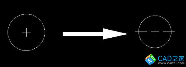 3.點(diǎn)擊需要繪制中心線的圓或圓弧,中心線即可繪出。