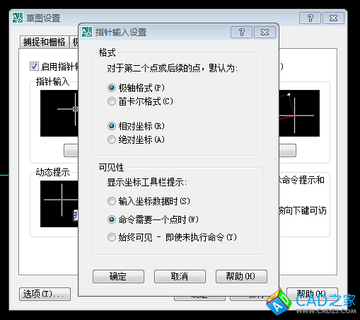 CAD默認(rèn)絕對(duì)坐標(biāo)樣改為相對(duì)坐標(biāo)的說明