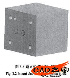 首先根據液壓系統原理圖和布置圖等的要求,初步確定液壓閥塊的大小。在SolidWorks中設計閥塊的基體特征,閥塊的基體是一個長方體,考慮到后期孔道特征的在各個面的創建,需要在長方體上增加輔助特征,即三個工作基準面:后視基準面,左視基準面和下視基準面,由于面的命名沒有什么規律,很多時候是程序自動來命名的,這樣,不方便使用SelectbyID來選擇,也不能使用坐標值來選擇一個面,那樣做更加糟糕,所以創建了三個輔助平面,對面進行布爾的判斷。