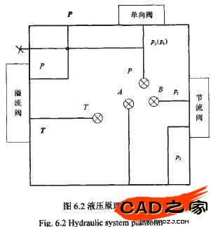 本章以一個典型的液壓基本回路為例,說明本文所設計的液壓閥塊設計系統的應用。不同復雜程度的不同液壓系統的設計,只是集成塊的數量、安裝元件的數量、集成塊的大小不同,都是這一設計過程的多次循環往復。液壓集成塊本身是一個三維長方實體,按照液壓傳動原理和所安裝的液壓元件不同,在各個面上加工出相應的通油孔道以實現系統傳動要求。目前所開發的軟件依賴于設計者的技術熟練程度和相關經驗,而設計工作總是專業人員的創造性勞動,不能突破“專業”的界限。