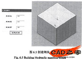 首先通過如圖6.3和圖6.4所示的查詢系統(tǒng)確定各個閥的底板尺寸,之后根據(jù)以上初步確定的連通關(guān)系確定閥塊的整體尺寸,生成的閥塊模型如圖6.5所示。