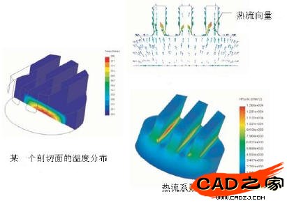 圖15散熱片中的溫度場分布和熱通量