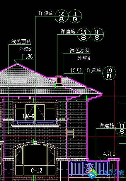比如右下角詳建施11/8的意思就是這個地方(欄桿)的詳細做法在本套圖紙的第8頁(即建施8)那張圖上編號為11的圖形。