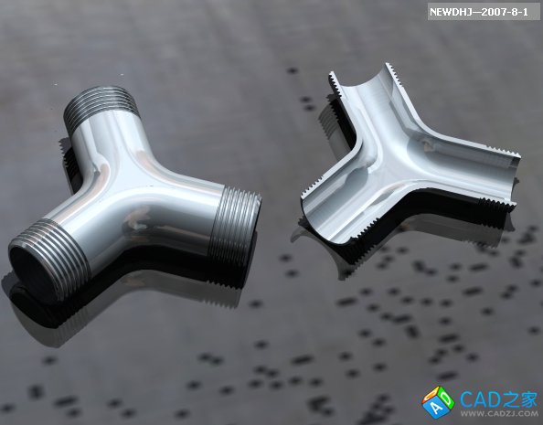 外螺紋的畫法應按國家制圖標準要求去畫與標注(見圖),如需要畫成你照片的實樣,則宜用Solidworks、ProE或UG等三維制圖軟件去畫,以Solidworks為例,先建個圓柱體,并在其一頭外徑作一螺旋線,并按螺旋線切去一三角形以形成螺紋,并按旋轉排列列陣成三個均等三個柱體,再圓角成你要求的形狀后,采用挖空到實際零件,至于右邊的半剖,只要按點下工具鈕上的半剖顯示即可。