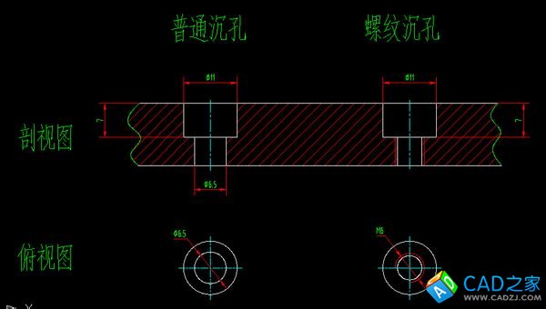 CAD帶螺紋的沉孔俯視圖怎么畫的說明