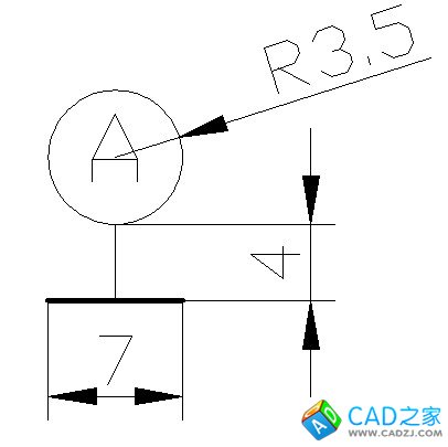 其中基準(zhǔn)符號的最下面的那條直線應(yīng)該當(dāng)畫成粗實線(5mm),而其余的就用細(xì)實線(默認(rèn)的2.5mm)即可。連接圓與下面的那條直線的直線長度為3.5/5.5mm就行了。