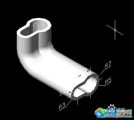 第三步:用PE多段線組合路徑成一體后,此教程由軟件自學網首發,點擊視圖菜單---三維視圖----西南等軸測,并把路徑與兩個對象調整好位置如圖3: