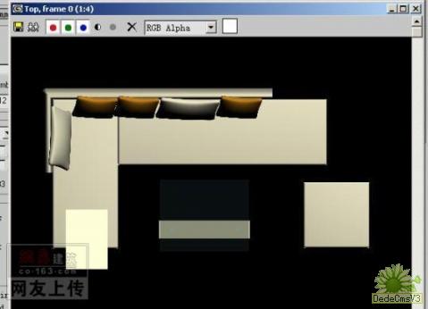 布置家具。通常有很多朋友會很頭痛要平面的家具圖庫,其實來源很簡單,只需要在3DMAX里面將家具的平面圖渲染一個TGA格式的圖就可以了,直接在PS里調用,自己想要什么樣的就什么樣的。