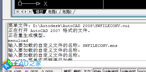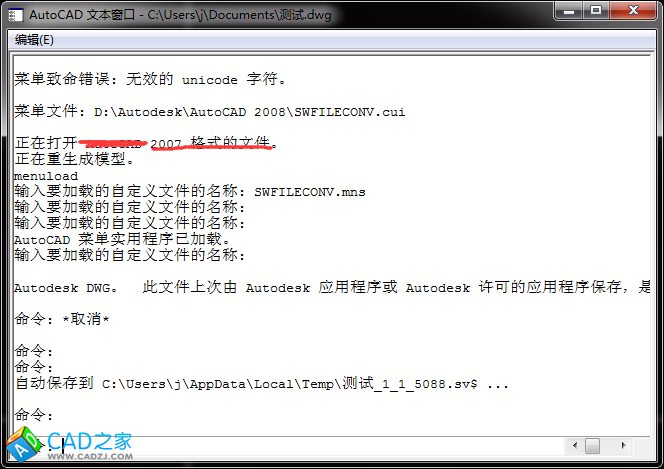 在打開的CAD圖紙中的命令行里往上查找,可以在歷史里找到如下圖,可以看到該圖紙是2007版的。