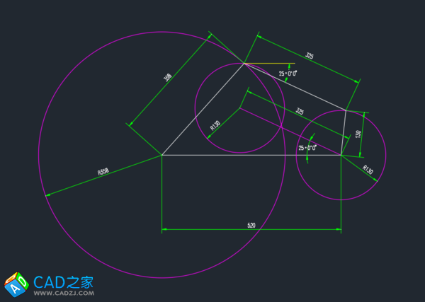 上一個截圖,洋紅色為所作輔助線,自己看能不能理解作圖原理,其實就是基本的幾何作圖問題,并不是AutoCAD的難題。