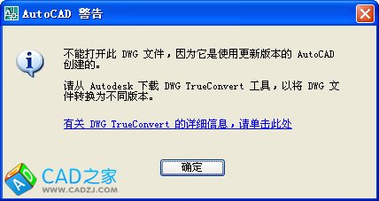 解決辦法:找類似提示對話框中提到的圖紙轉(zhuǎn)換工具,安裝高版本CAD,也可以讓有高版本的同事或朋友幫轉(zhuǎn)成低版本。