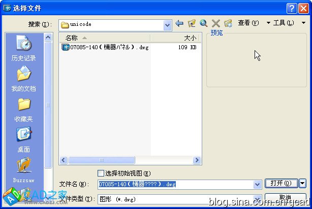 假如你用的是CAD低版本,比如AUTOCAD 2007以下版本或浩辰CAD8之前的版本,這些軟件是非UNICODE軟件,無法識別其他語言的特殊字母,例如要在中文操作系統(tǒng)打開一張日文文件名圖紙時,在打開對話框的文件名一欄中有些字符會顯示為問號,點“打開”按鈕后軟件會提示不識別或無反應(yīng),如下圖所示。