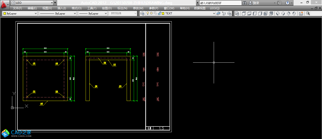 2、按照1:1制作圖框,然后放大N倍(使用SCALE命令),直到圖框能圈中所繪制的圖形為止,記錄下N的值,則該比例即為題主所描述的“圖框比例”,樣例中表示的圖框比例為1:5