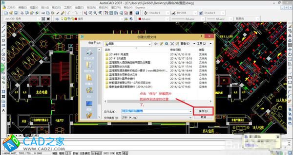 4、選擇截圖保存在電腦中的位置:在彈出的“創建光柵文件”菜單左側選擇截圖保存在電腦中的位置,本例中選擇“桌面”為保存位置,如圖紅框區域內,點擊即可。