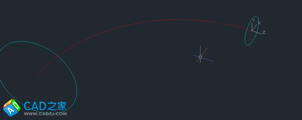 2. 再把UCS移動到圓弧的另一端并旋轉到與中心線垂直,繪制小頭圓外徑圓。
