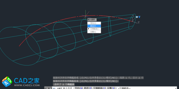 3. 三維放樣,截面選擇兩個繪制的圓,路徑選擇繪制彎管中心線圓弧。