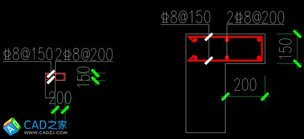 為什么大比例的圖會更加詳細呢,這就要說到和比例相關的一個東西,字體高度。一般來說,為了打印出來的圖紙能夠看清楚,在一定比例下的字體高度是有一個范圍要求的。比如建筑結構專業要求圖紙上的字高一般是3mm,所以在1:100比例出的圖,字體高度設置為300高,而1:50出的圖,字體高度相應就只有150高。用大比例畫圖,等比例出圖,圖變大了,但是標注的字體依然是那么小,圖會很明顯地清楚不少。可以看下圖: