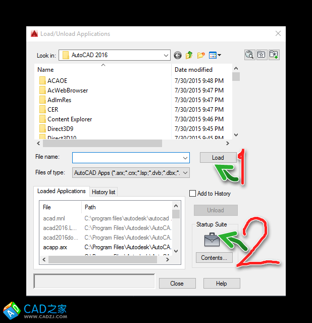 1是用來(lái)臨時(shí)導(dǎo)入的,2是將程序加入CAD的啟動(dòng)組。