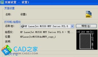 3、點擊確定,打開新窗口,選擇打印樣式表下拉菜單,選擇樣式為 monochrome.ctb 樣式,選擇自己的打印機/繪圖儀名稱和圖紙方向,然在在選擇圖紙尺寸,點擊確定。