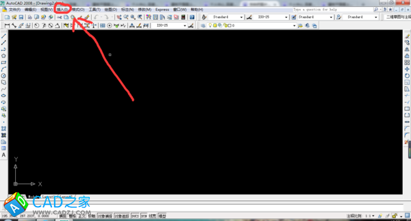 1,點擊CAD工具欄中的“插入”