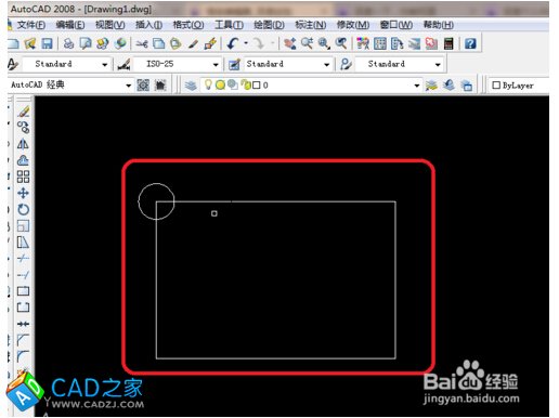 1、如下圖畫一個長方形長是800,寬是500,這里一定要記住這個數字,在長方形的角在畫一圓。
