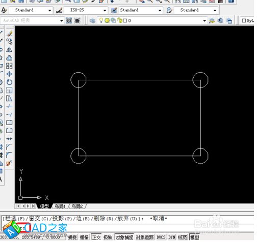 5、如下圖就完成了四個圓的陣列,在輸入tr,空格,空格來進行修剪。