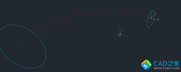 1. 在平面中畫出彎管的中心線——一段圓弧作為放樣的路徑,把UCS放到弧的一端并旋轉(zhuǎn)UCS到與繪制的中心線垂直,在新UCS平面中繪制圓錐管大頭的外圓(先繪制小頭也一樣)