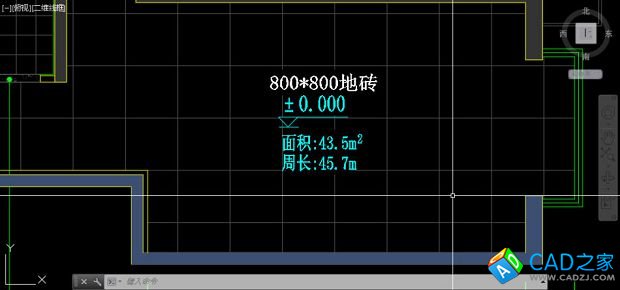 在下面例子中我在一個房間內創建了填充來計算房間面積,并將四周多余的圖形刪除了,如下圖所示。