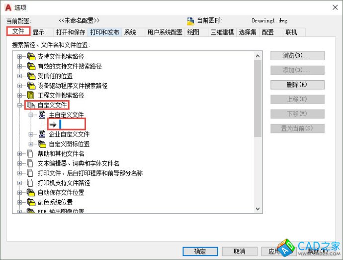 輸入MENULOAD或CUILOAD命令,回車,打開加載/卸載自定義設置對話框,如下圖所示。