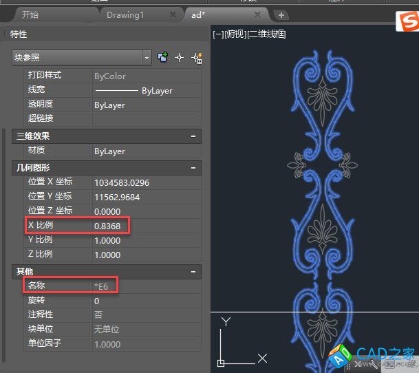 前兩天有位網(wǎng)友問為什么圖塊無法分解,之前發(fā)過相關(guān)的文章:cad圖塊無法分解怎么辦?他說塊可以編輯但無法分解,我想當(dāng)然地以為圖塊被設(shè)置了無法分解,結(jié)果按這個(gè)思路教了他解決方法,結(jié)果還是沒有解決問題,只能讓他把圖紙發(fā)過來,發(fā)過來后一看,圖塊是一個(gè)匿名塊(名字前帶*號(hào)),XZ軸比例為1,但X軸比例是0.8幾,如下圖所示。