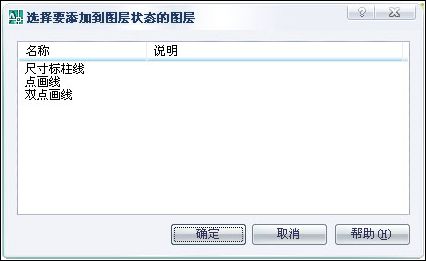 單擊“將圖層添加到圖層狀態”按鈕,將彈出一個對話框,列表中顯示選定的圖層狀態中沒有包含(出現)的圖層,可以將這些圖層添加到選定的圖層狀態中。