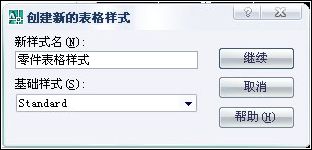 (2)、單擊“新建”按鈕,在“表格樣式名”文本框中輸入“零件表格樣式”,如圖。