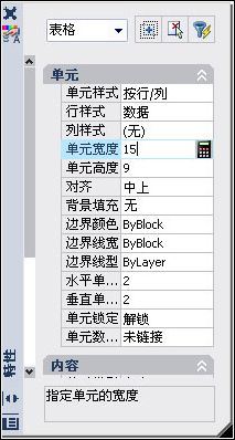 打開“特性”,在“單元”選項組中的“單元寬度”文本框中輸入15。