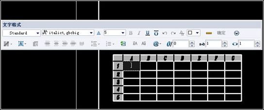 雙擊第二行第一列單元,彈出“文字格式”對話框,選擇“DIM”文字樣式,然后在此單元內(nèi)輸入文字“設(shè)計”,同理輸入其他文字,如圖。
